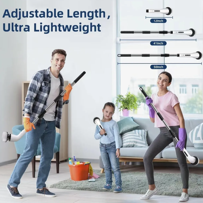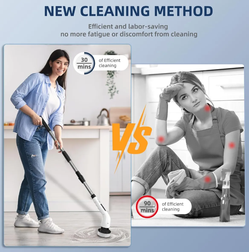 Adecuado para todos: Ideal para quienes buscan reducir esfuerzo y molestias en articulaciones o dolores en las rodillas y espalda. Su mango largo y ajustable, junto con sus cepillos especializados, hacen la limpieza más rápida y menos agotadora