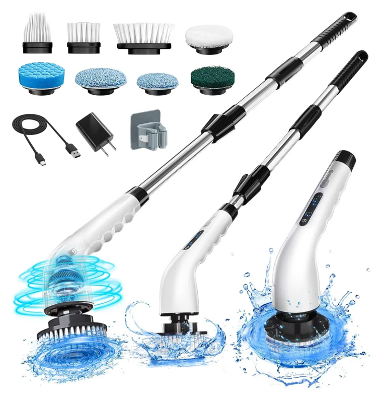 El limpiador giratorio eléctrico Momk Spin combina potencia y eficiencia, con un motor que alcanza hasta 35,000 RPM para limpiar fácilmente baños, suelos, ranuras y inodoros. Incluye 8 cepillos intercambiables para distintas superficies, desde baldosas hasta muebles y coches. Su mango ajustable de 12 a 50 pulgadas permite limpiar en diferentes alturas y ángulos.