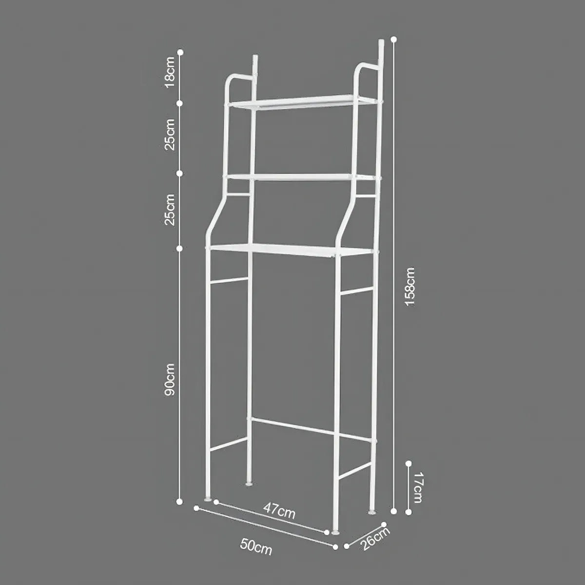 Este práctico y elegante estante de tres niveles, con dimensiones de 165x50x25cm, ofrece un amplio espacio para almacenar todos tus productos de higiene y cuidado personal, ayudándote a mantener tu baño libre de desorden.