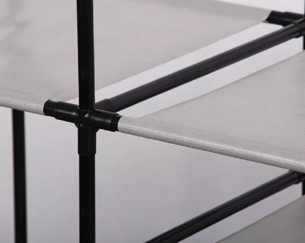 Construido con materiales de primera, este Closet Metálico es extremadamente resistente y duradero. Su estructura de tubería de hierro asegura una capacidad de carga reforzada, permitiendo almacenar desde suéteres y chaquetas hasta zapatos y bolsos sin riesgo de deformación. Su robustez garantiza que mantendrá su forma y funcionalidad a lo largo del tiempo, soportando incluso los usos más intensivos.